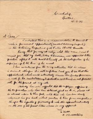 | 1925 | I am also aware that my name did not appear, anywhere, on the list finally recommended for appointment. In December of that year I was again interviewed and although placed second on the recommended list for Grade 1 Inspectors, I was not appointed. |